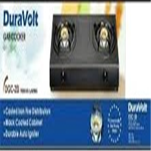 Description DURAVOLT TABLE GAS COOKER (DGC-2B) Duravolt Gas Cooker 2 Burner Dgc-2b Performance and specifications Condition New Type Cookers Duravolt table gas stove iron body panel with coating 2 cast iron burner enamel trivet gas stoving technology efficient and safe automatic ignition suitable for l.P.G gas saving technology