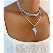 Cuban Link Chain With Map Of Africa Pendant Sliver