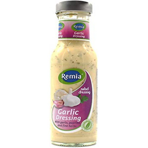 Remia Garlic Dressing 250ml;The Remias improved 250 ml Salad Dressings are now even more natural. The entire range is now free from artificial colours and flavours, free of preservatives and gluten free. The new, modern and robust bottle combined with the new design ensures greater shelf appeal in store.