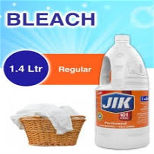 JIK Perfumed Stain Remover and Germs Killer is a household bleach. It's formulation contains extra whitening power and it is safe for use on most colorful washable fabrics inducing cotton, nylon and polyester.