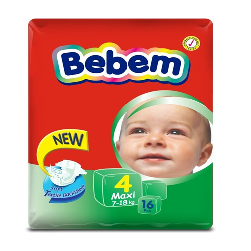 Description BEBEM BABY DIAPER is a hygienic baby care diaper that has super absorbent green layer with hook and tapes and soft textile backsheet.SIZE: SIZE 4 MAXINET WEIGHT: 7-18KGAMOUNT: 13PCS.