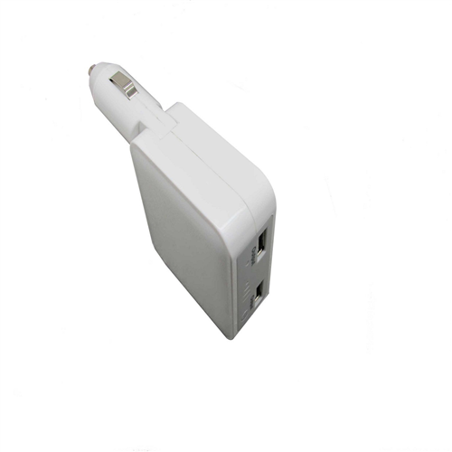 This awesome device functions as any ordinary 2.1A car charger would. With your device connected to this charger, the pass through allows high speed charging of smartphones or tablets. Featuring a fiendishly simple yet ingenious foldable design, it can be easily plugged and unplugged from your car's electrical port and placed in your bag or pocket to carry with you. Its small size is a welcome bonus as it will not hinder any operation of your vehicle or take up any more space than necessary. The power bank also replenishes its own power via your vehicles electrical port, so when you're finished driving, unplug it and take it with you to keep your devices in power.