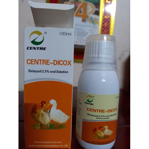 Centre-dicox is indicated for the treatment of coccidiosis in chicken caused by Eimeria tenella, Eimeria necatrix, Eimeria acervulina, Eimeria brunetti, Eimeria maxima, Eimeria mivati, and Eimeria mitis, as well as Eimeria adenoides and Eimeria meleagrimitis in turkey.