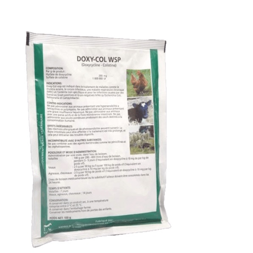 The association of both antibiotics shows excellent activity against systemic infections, as well as against gastro-intestinal infections. Therefore, Doxycol especially is recommended for mass medication under circumstances that need a broad prophylactic or metaphylactic approach (e.g. stress-situations).
