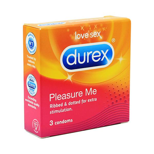 Description Durex Love Sex Pleasure Me Condoms (56 mm) 3 pcs. Dotted & ribbed condoms for extra stimulation.