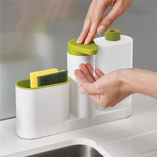 - Slim line sink caddy for storing brushes and sponges.