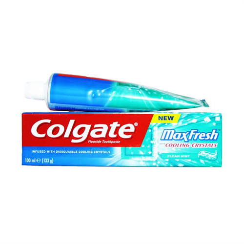 Colgate MaxFresh Clean Mint Fluoride Toothpaste – 100ml is infused with dissolvable cooling crystals which promtes fresh breath, white teeth and also fights cavties. A unique formula that now has a germ fighting system which adheres to your mouth to help fight problems such as plaque and gingivitis continously for 12 hours.