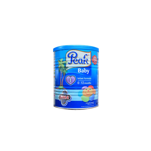 Description 400g 0-12 MONTHS PEAK BABY MILKSpecially formulated for babies between 0 – 12 monthsContains minerals, vitamins, and nutrients that will aid your child’s physical, mental and overall development