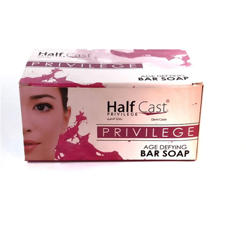 Description Half Cast Privilege Age Defying Bar Soap cleanses, exfoliates and treat the skin from blemish, acne and sunburn. This beauty soap removes excess oil and old dead skin cells, leaving your skin smooth and tender.