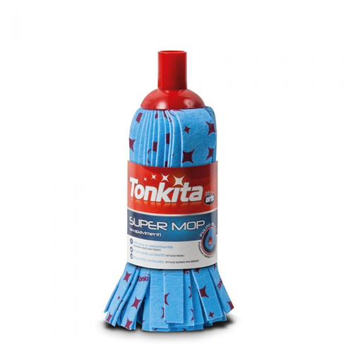 SUPERMOP nonwoven microfibre mop is ideal for washing ceramics, marble, gres and bricks floors. The soft nonwoven microfibres grant high wiping capacity and absorbing power and thansk to the antibacterial treatment, inhibite the build-up of bacteria and odors. The radial distribution of the stripes prevents the cap from scratching the surface