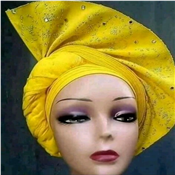Abikeade Asooke & Gele Grey Fully Embellished Autogele- Greyish
