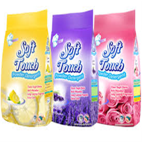 Product Description Made from the best raw quality with 18% of active matter, LAS 17%, CMC 0.5%, Density 320+/_G/L, Non-Ionic 0.25% . Soft Touch washing powder offer the best quality with the most reasonable price. Features: - Cold Adapted Enzymes - Added with Fabric Softener - Tough on Stains - Long lasting fragrance - Cleaness - Packing in the beautiful poly bag - Roses Blossom Flavor - Color care - Anti Malodour - For Machine and Hand Washing Packaging
