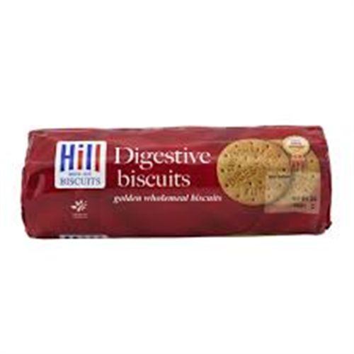 Description HILL CLASSIC DIGESTIVE ROUNDS BISCUITDIGESTIVE ROUNDSgolden wholemeal biscuitsThe King of everyday biscuits for that refined tea time treat. Made from a traditional recipe containing fine wholemeal and syrup.