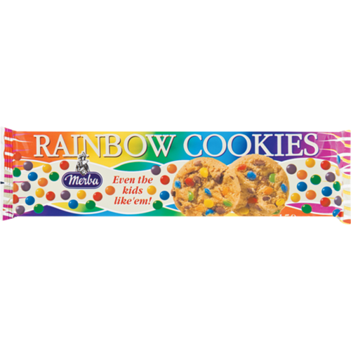 Description MERBA RAINBOW COOKIES – 150gDescriptionWith Colour Sugar Coated ChocolateFeatures & detailsThis is a Non-vegetarian product.Colourful Sugar Coated ChocolateRainbow CookiesQuantity: 150g