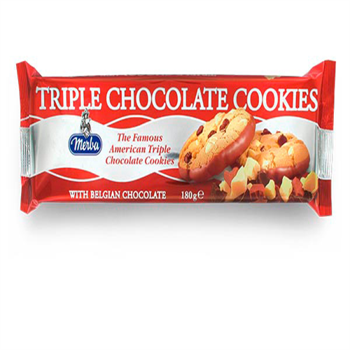 Description An exceptional cookies that combines three types of chocolate in 1 single cookies: milk, dark & white chocolate.The taste of this chocolate threesome together with the crunchy biscuit results in a very tasteful product.