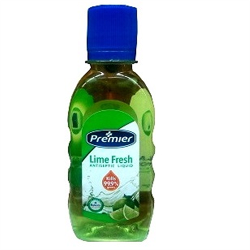 Description 125ML PREMIER LIME FRESH ANTISEPTIC LIQUIDPremier Liquid is an effective concentrated antiseptic solution that kills bacteria and protects against the germs which can cause infection and illness.