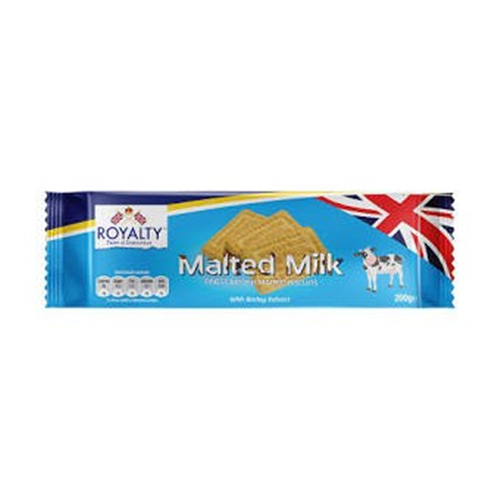 Description DESCRIPTIONEnjoy our melt in your mouth Malted Milk biscuits. Our Royalty biscuit range consists of classic recipes. Using authentic ingredients, we have created that traditional timeless taste you have come to love.