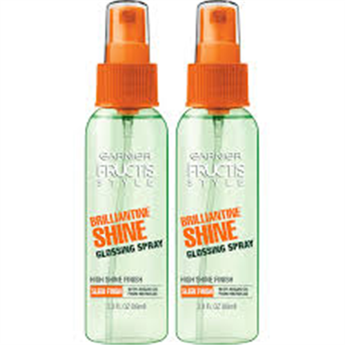 Garnier Fructis Style Brilliantine Shine Glossing Spray, with Argan Oil from Morocco, seals shine and moisture into hair, keeping it soft, glossy, and manageable. Paraben-free. GET INSPIRED! Create a "Shining Sleek" look: Lightly spray over flat-ironed locks for brilliant, glossy shine. • Glossing spray gives hair a sleek, high shine finish • Paraben-free formula with Argan Oil from Morocco • Seals shine and moisture into hair • Keeps hair soft, glossy, and manageable Hold bottle 6-8 inches from head and spray sparingly. For finer hair, spray product into hands, then gently smooth hands over hair.