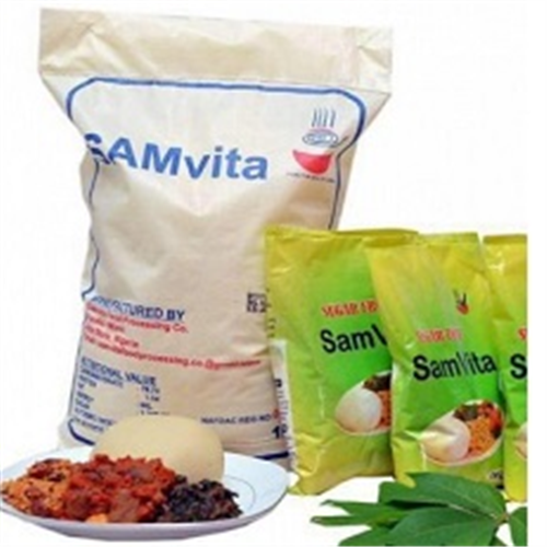 Samvita garri flour is easy to prepare, simply stir flour into boiled water. Its delicious taste and aroma gives you the satisfaction of a real Nigerian meal. Samvita can be eaten by anyone including the elderly and the diabetic because it is sugar free ( low carbohydrate). Enjoy your Samvita with any of your preferred soup. suitable for making a variety of pastries, whole or in the composite forms (cakes, cookies, doughnuts and breads) and convenience foods. it is the closest to pounded yam that you can get, without actually going through the stress of pounding the Yam.