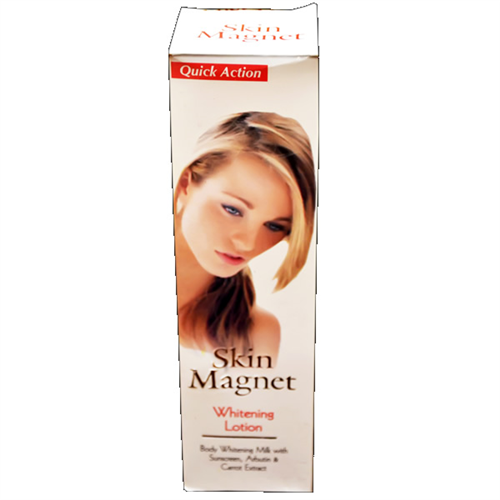 Skin magnet lightening lotion contains Avocado oil and vitamin E that has been specially developed to sensitive skin, it protects the skin from blemishes and gives a more even skin tone.