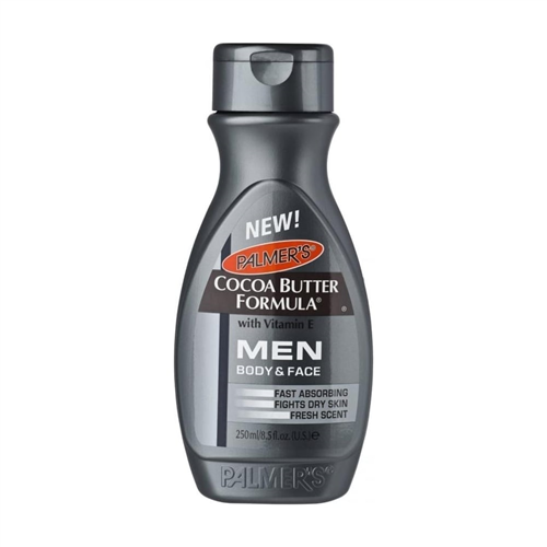 Palmer’s Cocoa Butter Formula Men Body & Face Lotion has a fast-absorbing formula. Instantly combats rough, dry skin. Made with pure Cocoa Butter and Vitamin E for maximum protection. Skin feels invigorated and well moisturized without a greasy feeling. Fresh masculine scent.