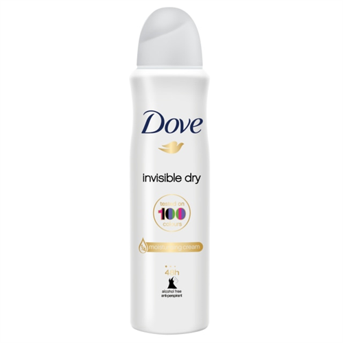 Ever skipped wearing your favourite little black dress out of fear of white deodorant stains? Make way for your new favourite accessory: Dove Invisible Dry Anti-Perspirant Deodorant. Proven to leave no white marks on 100 colours, your wardrobe just got a whole lot more colourful. And just like every Dove deodorant, it’ll also give you long-lasting protection against sweat and odour – so you won’t have to worry about wet patches either. It’s not just your clothes that’ll reap the benefits of this gentle Dove spray. Dove Invisible Dry is completely alcohol free, and is enriched with our ¼ moisturising cream that leaves skin soft and smooth. This Dove deodorant also brings reliable underarm care by helping skin to recover from irritation caused by shaving, caring for underarm skin.
