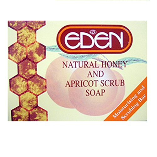 - Eden Natural Honey and Apricot Scrub Soap is moisturising and scrubbing soap bar.
