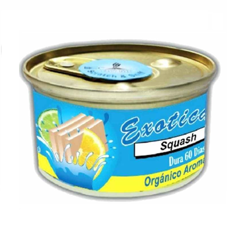 - The Exotica Squash Scent is made with organic fiber material saturated with high quality fragrant oils. It provides a multitude of uses from household, office and automobile. The round can is also suitable for use inside the car as well as in other small areas.