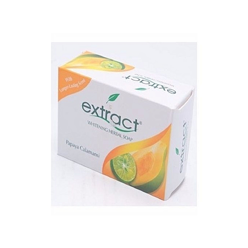 Extract Whitening Soap – Papaya Calamansi Dermatologically tested Extract Skin Whitening Soap with Papaya Calamansi reveals your natural beauty and makes the skin whiter, softer and smoother by drying out pimples and blackheads. Citru White formula combines the natural whitening power of Papaya extracts with another natural whitener – Calamansi and Vitamin C to deliver the desired skin solution in less than 2 weeks!Extract whitening herbal soap is good for smooth bright skin. Makes your body looks younger.