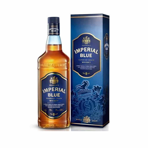 A blend of Scotch malts and superior Indian grain spirits for exquistic smoothness and rounded taste. The world over all fine whiskies including Scotch, are made from grain. Seagrams Imperial Blue is a flawless blend of Indian grain spirits and imported Scotch malts. You will note its balanced taste and exceptional smoothness. ABV: 42.8%