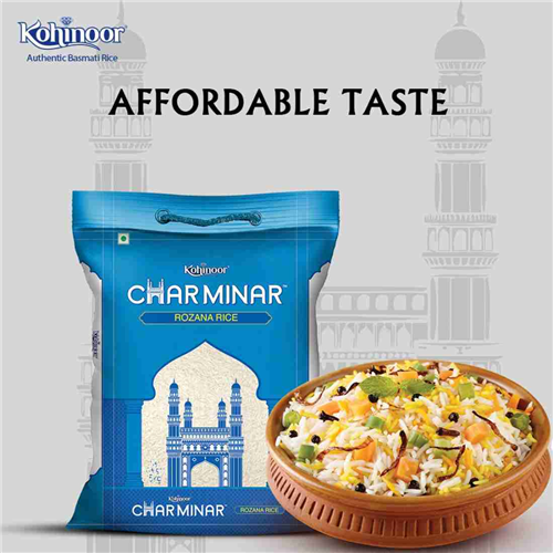 Charminar Rozana is a tribute to the flavorful traditions of the Nizams. Each grain of Charminar Rice, on cooking, brings out a distinct aroma and becomes fluffy, thin, long and non-sticky.