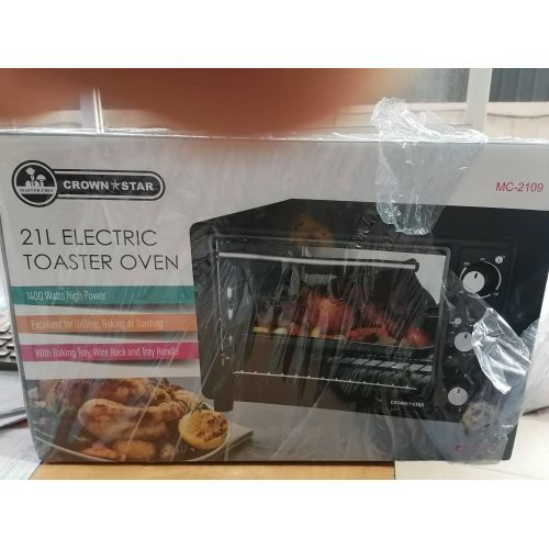 The Crownstar 21 Electric Oven features a 4 durable stainless steel heating element for fine heating, baking, toasting and grilling. The 4 Stages heating selector and 100-250 degrees thermostat control ensure a perfect result. It has a 60 minutes timer with end bell ring to notify you at the end of the cooking process. Designed with anti-heating scalded door-opening design for easy opening of the door.
