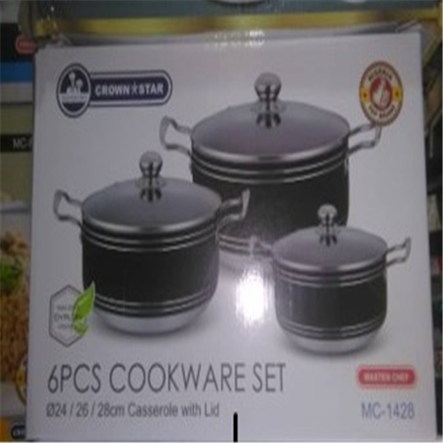 These 6 Pieces (3 pots, 3 glass lids ) Non-Stick Cookware has been designed to allow you prepare virtually any kind of food. Its nice interior coating helps keep food from sticking and also allows for easy cleaning afterwards. It is dishwasher safe so cleaning is even easier. Additionally, its elegant exterior will complement your kitchen decor. The handles are well-designed to provide a comfortable and secure grip. It also remains cool even after heat has been applied to the cookware. The non-stick pots heat up quickly and food is guaranteed to be cooked evenly. You will use less oil when cooking with the non-stick pots which make them ideal for health conscious people. This Non-Stick Cookware is made from high grade materials which ensure superior durability. You can use these non-stick pots for a long period of time. They offer best results at all times. They have glass covers which allows for proper viewing while cooking and they offer a tight fit so all the nutrients and flavor will be properly trapped in. These non-stick pots come in different sizes to accommodate all your cooking needs. They are really nice cookware set for everyday use. The bottom of the pots have been properly designed to sit perfectly on any electric or stove top.