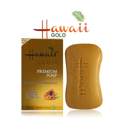 Hawaii Premium Gold Soap is a specially formulated soap infused with papaya, carrot and apricots. This leave your skin smoother, softer and brighter. It is packed with active ingredients that help achieve beautiful skin naturally whilst protecting from sun damage. The soap also contains anti-bacterial properties, to fight bacteria and ensure protection.