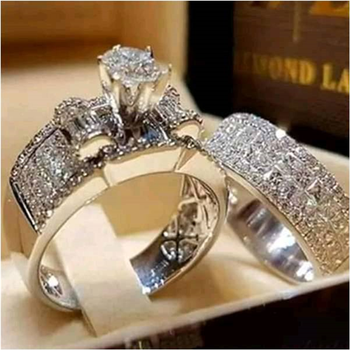 The pair wedding rings is for male and female . the bride's piece has the cubic zicornia stones around it which is embedded and can't never fall off while the groom's piece is the plain one. It's made of high quality material i.e silver plated . it's available in various sizes.
